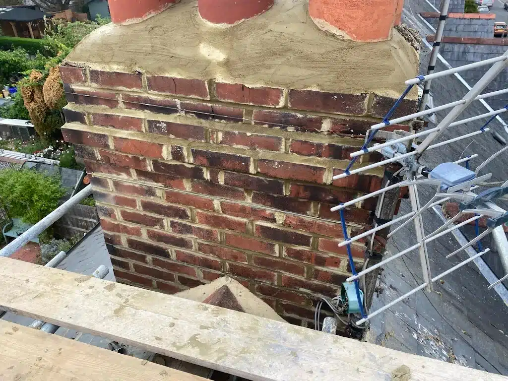 Repoint and restore chimney brickwork to prevent moisture ingress and structural damage.